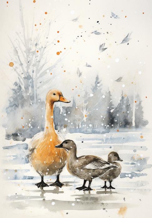 Вышли гуси на прогулкуИ пошли по переулку.Гуси белые гуляют,А снежинки всё летают.Гуси трогают снежинки:«Что же это за пушинки?Может быть, лебяжий пух?» —Загалдели гуси вслух.Смотрят гуси на снежинки:«Это, может быть, смешинки?»И гогочут гуси громко:«Из снежинок тут позёмка!»По снежинкам походили,И на лёд они ступили,Лапки голые скользятИ от холода блестят.Чуть прошли – уже замёрзли,Гуси сразу же замолкли,Не гогочут больше гуси,Просьба есть у них к бабусе:«Нам, бабуся, б валенки,Будем в них удаленьки,И тогда нам не страшнаОчень снежная зима!»
