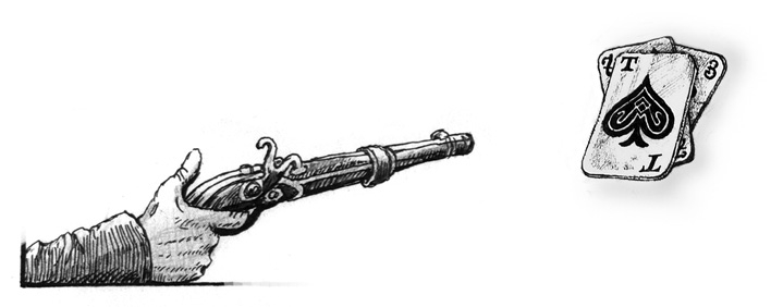 Чекалинский стал метать, руки его тряслись. Направо легла дама, налево туз.