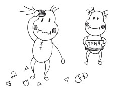 Берется приз, заворачивается в бумагу. На обертку приклеивается текст любой загадки. Вновь заворачивается. И снова приклеивается загадка. И так 10 раз. Играющие садятся по кругу. Ведущий дает в руки одному завернутый в 10 оберток приз. Играющий убирает одну обертку, видит загадку, читает ее про себя. Если отгадал – говорит отгадку, если нет – читает загадку вслух; кто ее отгадал, получает право далее развернуть приз, и все продолжается по этой же схеме. Выигрывает тот, кто, угадывая загадки, доберется до самого приза.
