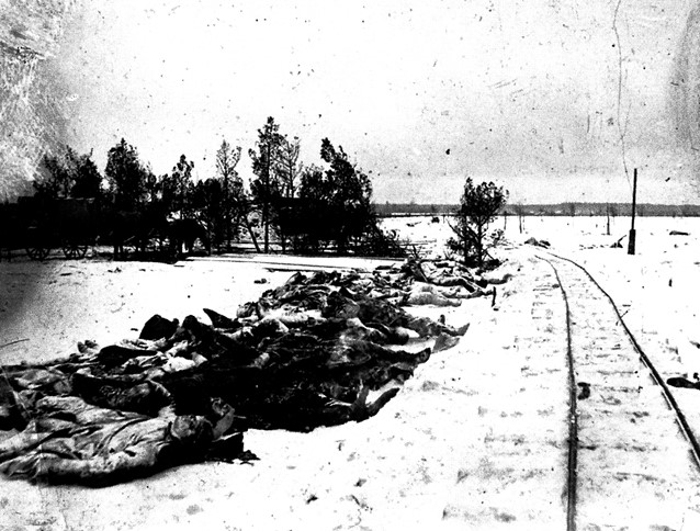 1917 г., январь. Погибшие в Рождественских боях латышские стрелки в районе Тирельских болот