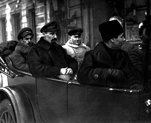 1919 г., январь. Слева направо: член РВСР А.Окулов, член РВС Армии Советской Латвии Я.Пиече, главком Армии Советской Латвии И.Вациетис в Даугавпилсе.