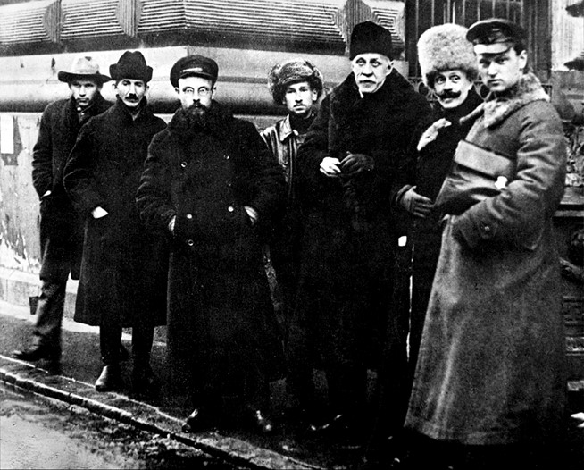 Справа налево: К. Данишевский, К. Петерсон, П. И. Стучка, Я. Шилф, О. Карклиньш, Я. Ленцман, Д. Бейка