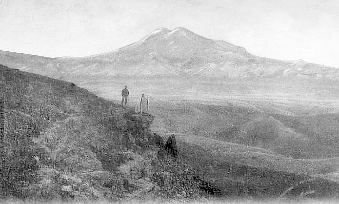Общество восходителей провело ночь на Черных горах. На следующий день, 22-го числа, в три часа утра экспедиция начала подъем на горы, покрытые снегом. Солнце сияло. Ни одна туча (хотя на этой высоте горы почти всегда покрыты тучами) не показалась близ горы, вершина которой терялась в пространстве. Можно было подумать, что само небо благоволило первому проникновению человека в эти священные места.