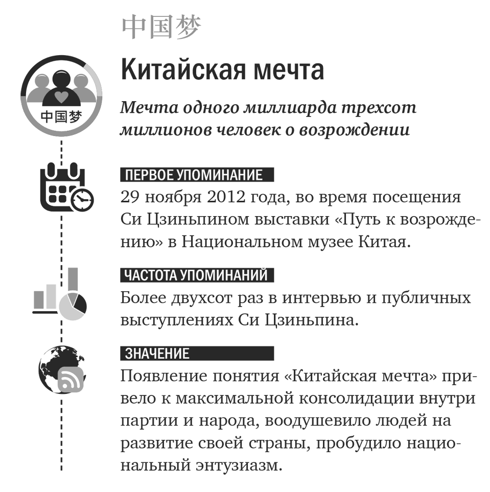 Изначально «китайская мечта» – это мечта китайского народа, и осуществлять ее следует с твердой опорой на народ и во благо народа. Объясняя это понятие, Си Цзиньпин сказал, что «каждый человек, в процессе борьбы за китайскую мечту, может осуществить свою собственную мечту».