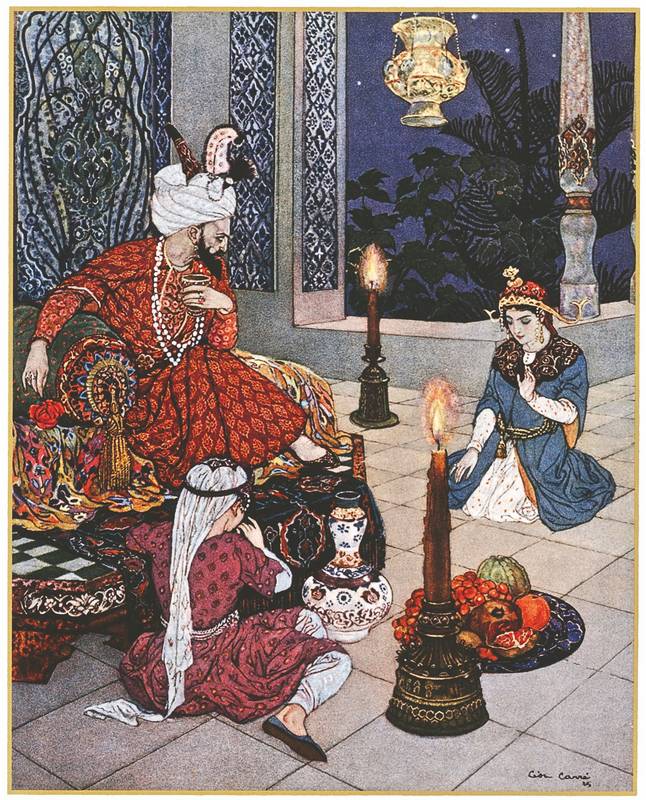 В «Тысячу и одну ночь» попало немало отрывков из «царских зерцал», в ее сказках и повестях действуют бесчисленные цари и султаны, правящие людьми и джиннами. Но все они сведены к нескольким типам – либо это настоящие «сказочные» цари (Синий царь, Красный царь, правитель Камфарной земли и так далее), либо бледные и невыразительные персонажи дидактических повествований, трактующих о неминуемости смерти, о пользе благоразумия и вреде поспешности, либо своевольные тираны вроде халифа Харуна ар-Рашида. Нет, не цари и везири истинные герои сказок.