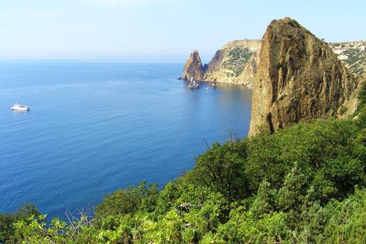 Взойдите на Отлукая и поглядите на Кохтебельский залив. Что за вид! Море синею эмалью врезалось в широкий, ласковый пляж и слилось на горизонте с лазурью южного неба. Как крыло чайки, бросившейся в волну, белеют паруса турецких филюг, и дымок парохода убегает за дальний мыс Киик-Атлама.