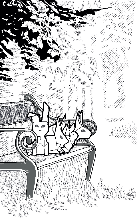 Между стволом березы и одной из ее веток притаился знакомый сверток из коричневого пергамента. Его венчала белая фигурка кролика – простенькое оригами из бумаги.