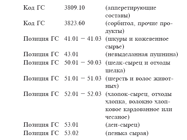 Приведенный выше список не ограничивает перечень продуктов, охватываемых Соглашением по применению санитарных и фитосанитарных мер.