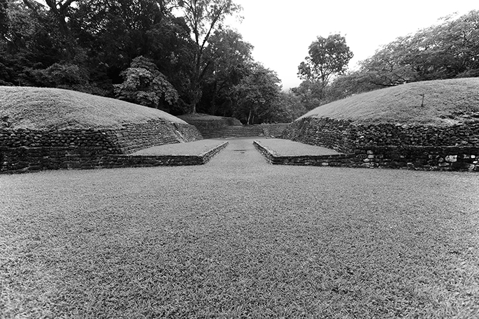 Недалеко от центра расположен хорошо сохранившийся «стадион» – площадка для игры в мяч. Матч заканчивался жертвоприношением, и головы несчастных игроков выставлялись на стене с изображением черепов для всеобщего обозрения.
