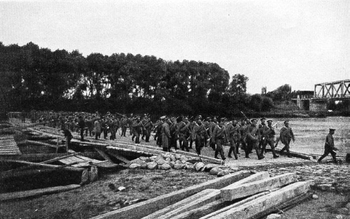Группировка сил определила ход событий. 23–27 августа наша 4‑я армия ген. Эверта в борьбе с превосходящими силами австрийцев испытала ряд неудач и была вынуждена отойти на ближайшие позиции к югу от Люблина. Наше стратегическое развертывание, допустившее такую слабость 4‑й армии, было явно ошибочным. Но современная обстановка, вопреки известной мысли Мольтке, допускает исправлять и ошибки в первоначальном развертывании: с 25 по 30 сентября полился непрерывный поток подкреплений, перебрасываемый по железной дороге к 4‑й армии и на оба ее фланга, увеличивший здесь наши силы с 7 до 17 дивизий. Кроме 3 второочередных дивизий, опоздавших к началу боев на фронте 4‑й армии, сюда были переброшены находившийся в пути с Кавказа III Кавказский корпус и XVIII и Гвардейский корпуса, являвшиеся частью собиравшейся у Варшавы 9‑й армии. Группа войск, собиравшаяся на правом фланге 4‑й армии, была объединена в составе 9‑й армии. Уже 27 августа австрийцы почувствовали возросшую силу русского сопротивления; для усиления армии Данкля в ночь на 29 августа был переправлен у Юзефова австрийский корпус Куммора, а в ночь на 5 сентября – германский ландверный корпус Войрша. Тем не менее наше положение к югу от Люблина становилось все устойчивее, инициатива переходила к нам, а очищение левого берега Вислы австро-германцами открыло простор действиям нашей кавалерии ген. Новикова, который глубоко продвинулся вверх по левому берегу Вислы.