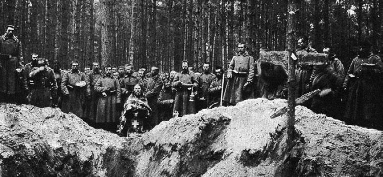 Братская могила в Козенецком лесу. Панихида по чинам, павшим в бою 1–2 октября 1914 г.