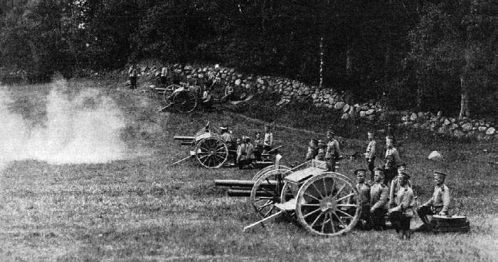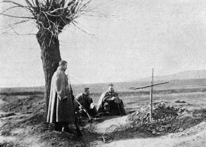 Такой же острый кризис, как и мы, в снарядах и винтовках переживала Австро-Венгрия. Вместе с миллионами пленных она потеряла и миллионы винтовок; в запасных частях в Австрии обучение обращению с оружием новобранцев производилось также преимущественно вприглядку.