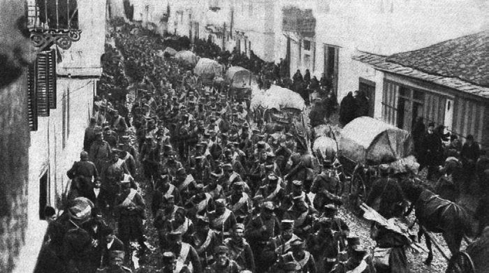 14. Сербский фронт. 5‑я и 6‑я австро-венгерские армии ген. Потиорека, выставленные против Сербии, насчитывали 13 дивизий – 140 тыс. полевых войск и 85 тыс. ландштурма. Силы сербов состояли из 11 сильных дивизий – 180 тыс. и около 100 тыс. ополчения. Организация сербской армии, имевшей характер хорошей милиции, не соответствовала требованиям наступления в пределы Австрии, как это показал их переход через Саву в начале сентября или вторжение в Боснию в октябре. Эти наступления, связанные с крупными неудачами, были предприняты отчасти из-за давления, неосновательно оказанного русским верховным командованием. Сербия была истощена двумя предшествовавшими балканскими войнами, не имела ни необходимых для наступления крепких кадров, ни нужного снаряжения; но, защищая родную землю, сербские солдаты дрались прекрасно.