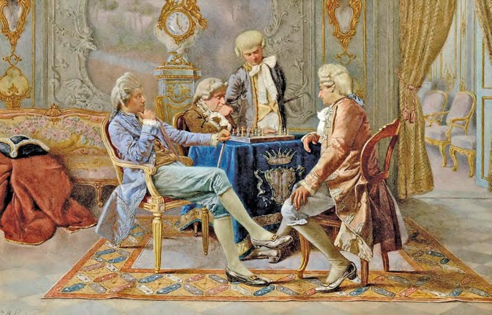 4В бывшем кабинете деда, где даже в самые жаркие дни была могильная сырость, сколько бы ни открывали окна, выходившие прямо в тяжелую, темную хвою, такую пышную и запутанную, что невозможно было сказать, где кончается одна ель, где начинается другая, – в этой нежилой комнате, где на голом письменном столе стоял бронзовый мальчик со скрипкой, – был незапертый книжный шкап, и в нем толстые тома вымершего иллюстрированного журнала. Лужин быстро перелистывал их, добираясь до той страницы, где, между стихотворением Коринфского, увенчанным арфообразной виньеткой, и отделом смеси со сведениями о передвигающихся болотах, американских чудаках и длине человеческих кишок, была гравирована шахматная доска. Никакие картины не могли удержать руку Лужина, листавшую том, – ни знаменитый Ниагарский водопад, ни голодающие индусские дети, толстопузые скелетики, ни покушение на испанского короля. Жизнь с поспешным шелестом проходила мимо, и вдруг остановка, – заветный квадрат, этюды, дебюты, партии.