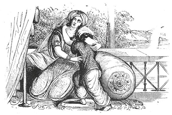 Они зажгли любовь в душе моейИ все затем за тридевять земельУехали, чтоб поселиться там.И с их отъездом ум мой помутился,Отрады сна не знают больше очи,И укоряю я веленья рока.В то время как она плакала и рыдала, и сын ее плакал вместе с нею, к ним вошел визирь. Сердце у него заныло при виде их горя, и он спросил: