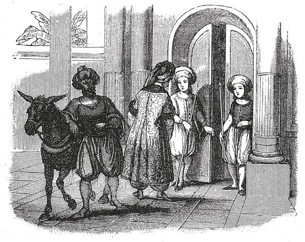 – Хорошо, – отвечала она, – но ведь сегодня канун пятницы, и до завтра предпринимать мы ничего не будем. Завтра же, после молитвы, садись на своего осла и спроси, как тебе проехать в Габбанаех, а приехав туда, спроси дом, называемый Каахом[125] акарата Накиба[126], по прозвищу Абу-Шамех. В том доме я живу; и не медли, потому что я нетерпеливо буду ждать тебя.