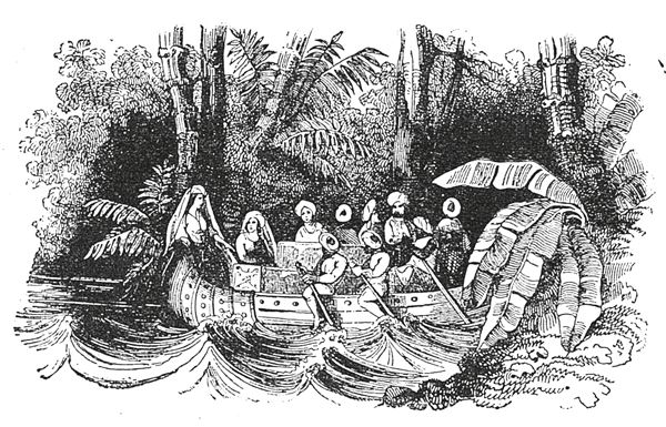 Между тем лодка подошла к воротам дворца, и из нее стали выгружать сундуки и переносить их во дворец, но начальник стражи, спавший в то время, как лодка причаливала, проснулся от криков носильщиков и крикнул моей возлюбленной: