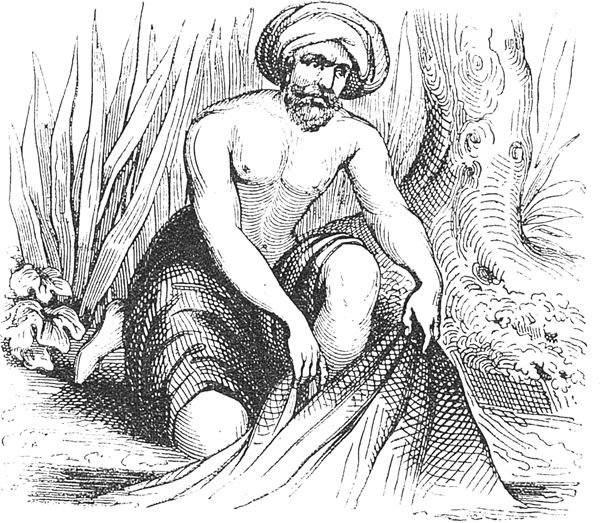 Халиф и Джафар пошли к Тигру, рассуждая об этом предмете, и под окнами дворца увидали рыбака, закидывавшего сеть в надежде поймать что-нибудь себе на насущный хлеб.