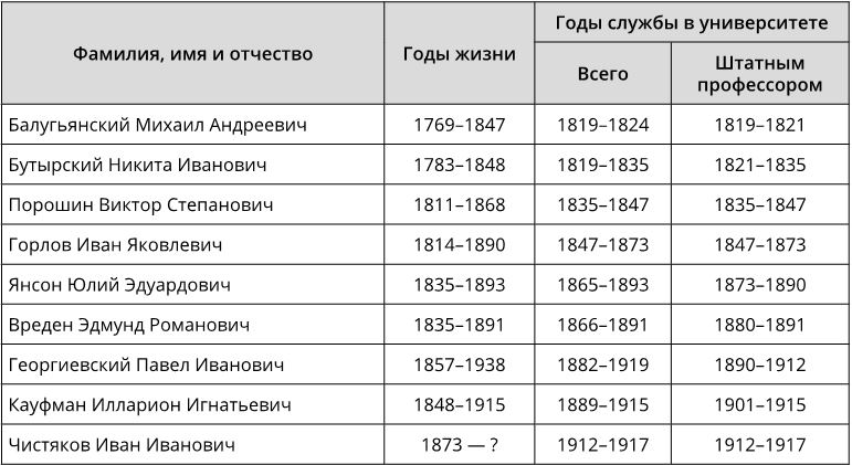 Таблица 1. Список ординарных профессоров кафедры политической экономии (с 1835 г. – кафедры политической экономии и статистики) Императорского Санкт-Петербургского университета (1819–1917)