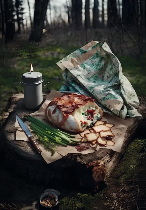 – Кусок сала, луковица да пара картофелин в мундире.