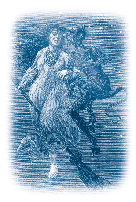 Ведьма сама почувствовала, что холодно, несмотря на то что была тепло одета; и потому, поднявши руки кверху, отставила ногу и, приведши себя в такое положение, как человек, летящий на коньках, не сдвинувшись ни одним суставом, спустилась по воздуху, будто по ледяной покатой горе, и прямо в трубу.