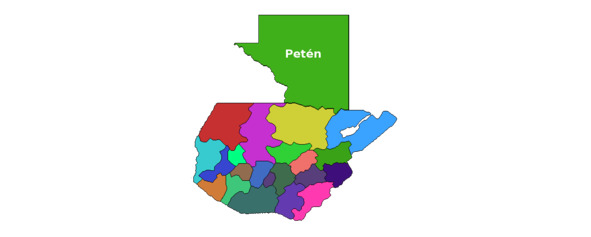 Очертания департаментов Гватемалы и место среди них Петена