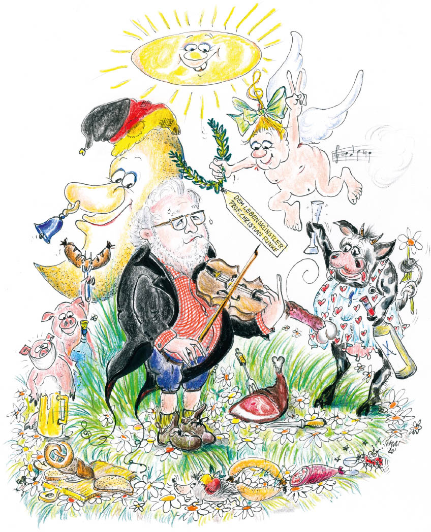 Ulla Schäfer und Christian Funke sind auf die herausfordernde Seelen- und Zeitreise gegangen, um aus den tiefen Schächten von Erinnerungen und zeitgeschichtlichen Dokumenten genährt, ein lebendiges Porträt zu zeichnen. Christian Funke „in Worte zu fassen“, ist aufwendig, weil er nicht gern von sich reden macht, und schon gar nicht im Zentrum einer Hagiographie stehen möchte. Er ist kein unfassbares Phantom, jedoch bescheiden, zurückhaltend, man muss sich ihm nähern, um ihn in als liebenswürdige Persönlichkeit kennenlernen zu dürfen. Einer Illusion sollte man nicht anheimfallen, zu meinen, er sei ein duldsamer, „stiller feiner Mensch“, nein dazu ist er zu klug, gewitzt, genau beobachtend und menschenerfahren (mit einer innewohnenden musikalischen Primadonna assoluta). Er ist auch nicht wehrlos, an dem einfach vorbeigegangen, über seinen Kopf hinweg entschieden werden kann. Ihn damit zu verdrießen, das sollte vermieden werden, wie zu lesen sein wird. Wenn in der Etymologie das Wort Person hergeleitet wird, wird unter anderem auf das „Personare“ verwiesen, das Hindurchtönen, klingen lassen, so wie Schauspieler in der Antike durch Masken sprechend ihre typisierten Rollen vortrugen. Die lebenspralle Person Christian Funke sollte man erlebt haben, oder sich wieder in Erinnerung bringen. Wenn er seine Geige unter das Kinn klemmt, wird er als Medium einer klangsinnlichen Verzückung des Auditoriums „hindurchhörbar“.