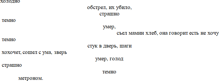 …Дед очнулся в темноте от стука метронома. Он потряс головой. Очки свалились с мокрого от слез лица, метроном исчез: это Вовка, отвлекшийся от приготовления уроков, дубасил палкой по картонной коробке. Старик, вздыхая, встал и упрятал тетрадку глубоко в стол. Скорбные мысли, обращенные в слова, покинули его, а потому дед объявил Вовке, что на «урок мужества» пойдет, если только будет хорошо себя чувствовать.
