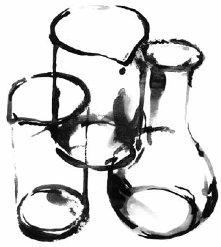 Auf der Grenze zwischen hell und dunkel steht, ein wenig schief, ein kolossaler Küchenschrank. In seinem Innern warten Heerscharen von Töpfen, Pfannen, Schüsseln, Schalen, Tellern, Tassen, Gläsern und Bestecken.