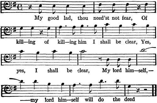 My good lad, thou need'st not fear,Of killing, of killing him I shall be clear,Yes, yes, I shall be clear,My lord himself, my lord himself will do the deed.