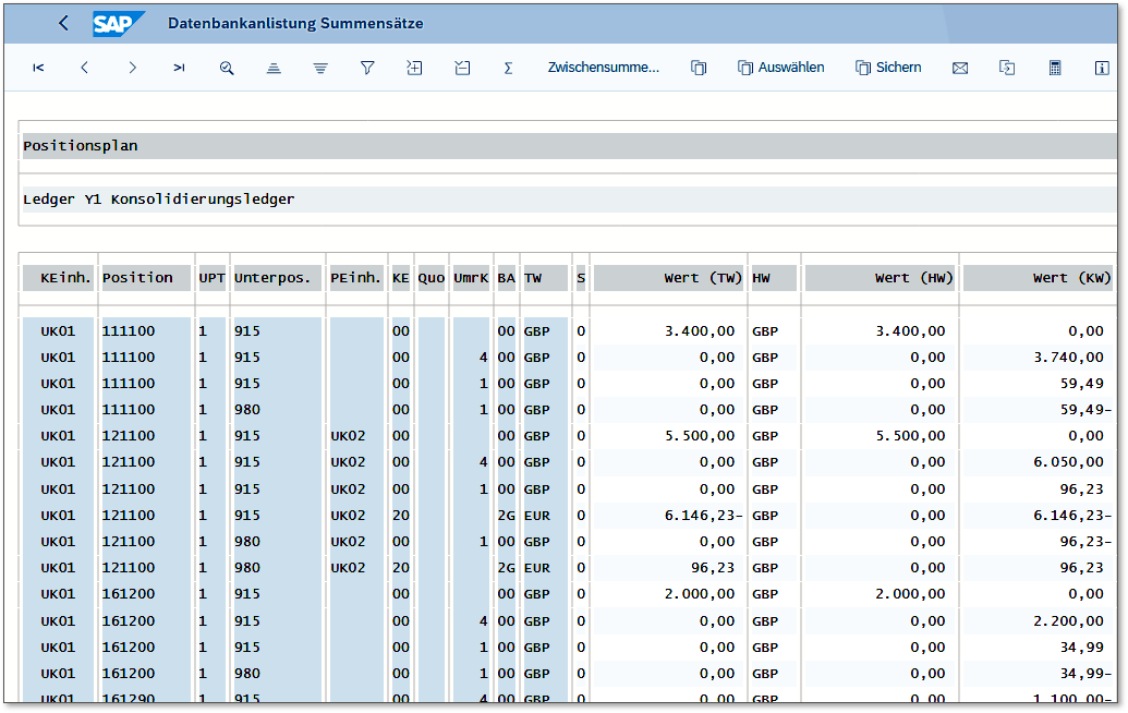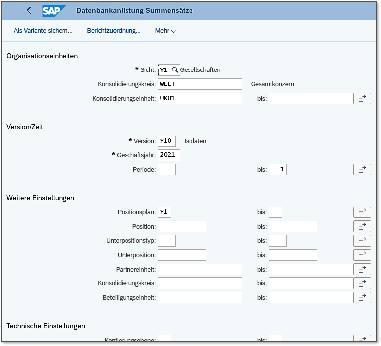 Die Datenbankanlistung wird in den nachfolgenden Kapiteln an verschiedenen Stellen verwendet, um die Buchungsweise im Group Reporting zu verdeutlichen.