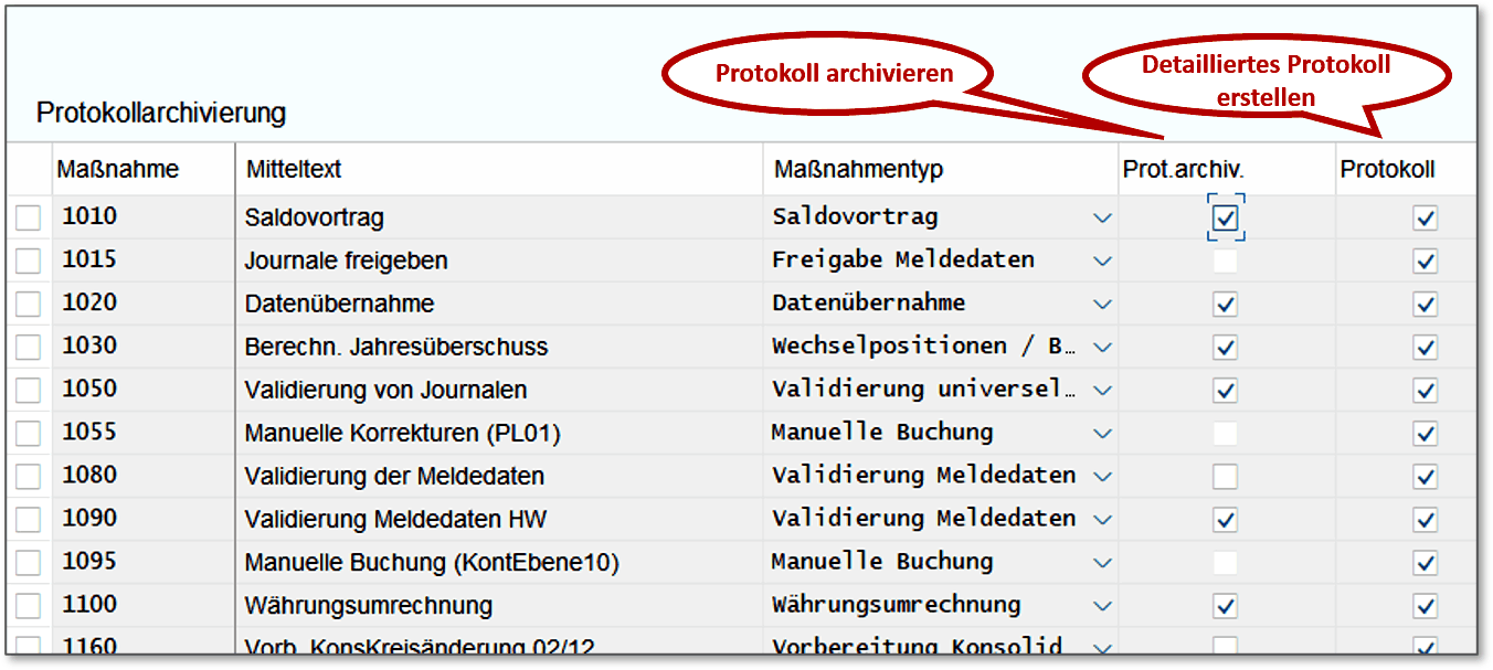 Abbildung 3.9: Protokollarchivierung für Maßnahmen pflegen