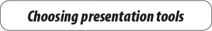 Prezi (see www.prezi.com) is an interesting alternative to PowerPoint. It takes a different approach to presentations, which can be very stimulating. Essentially, you have a blank screen onto which you can stick text, pictures or other media, which allows you to build up an electronic collage or map. Once you have collected your material, you tell the program the sequence it should follow through your presentation.