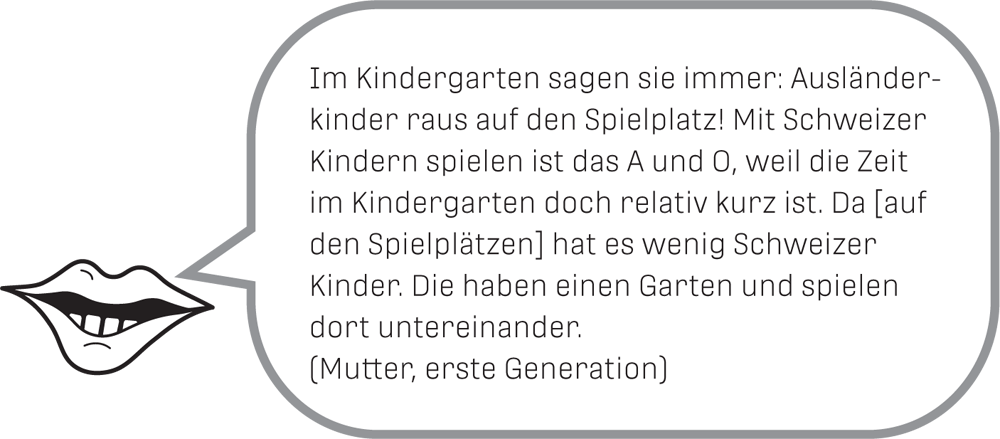Die folgenden zusammengefassten Schilderungen illustrieren die alltäglichen Erfahrungen der Eltern im Zusammenhang mit der Nutzung von Angeboten zu Bildung und sozialer Integration. Dabei zeigt sich – wie einleitend bereits festgehalten –, dass die beschriebenen Erfahrungen nicht ausschliesslich Familien mit Migrationshintergrund betreffen, sondern für alle Familien gleichermassen relevant sein können. Des Weiteren gilt es diesbezüglich zu betonen, dass es nicht darum geht, sämtliche Wünsche und Bedürfnisse vonseiten der Eltern stets eins zu eins umzusetzen, sondern vielmehr darum, als pädagogische Fachperson in einem ersten Schritt für elterliche Anliegen ein offenes Ohr zu haben und ihre Bedürfnisse wahrzunehmen. Daraus können in der Folge ganz unterschiedliche Massnahmen abgeleitet werden. Diese können beispielsweise darin bestehen, die vorhandenen Angebote zu überdenken und weiterzuentwickeln, an entsprechende politische Entscheidungsträgerinnen und Entscheidungsträger zu gelangen, um die Anliegen der Eltern zu vertreten, oder Eltern explizit auf alternative Angebote aufmerksam zu machen. Oft reicht es zudem schon, wenn pädagogische Fachpersonen Eltern oder Kinder zu einer Teilnahme motivieren und das Vertrauen in ein Angebot erhöhen.