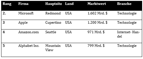 Die größten, börsennotierten Unternehmen nach Marktkapitalisierung :