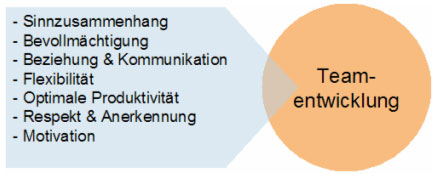 Das gelingt allerdings nur, wenn mit der Erreichung des Teamziels auch die Bedürfnisse der einzelnen Teammitglieder befriedigt werden (z. B. Anerkennung, Erfolg, Entwicklung, Einkommen).