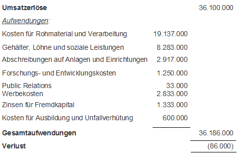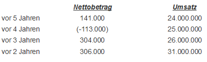 Der NETTOBETRAG (Verlust) und der UMSATZ der letzten 5 Jahre :
