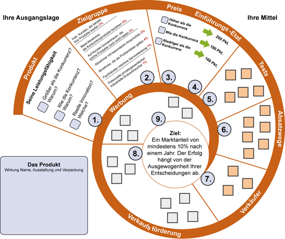 Der Aufbau dieser Übung spiegelt einen gar nicht so untypischen Ablauf der Marketing-Entscheidungen wider. In der Tat begann es dort, wo das Marketing seinen Ausgangspunkt nimmt: beim Produkt.