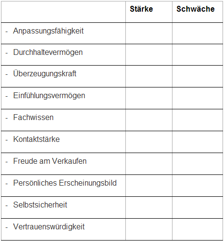Stärken- und Schwächenkatalog: