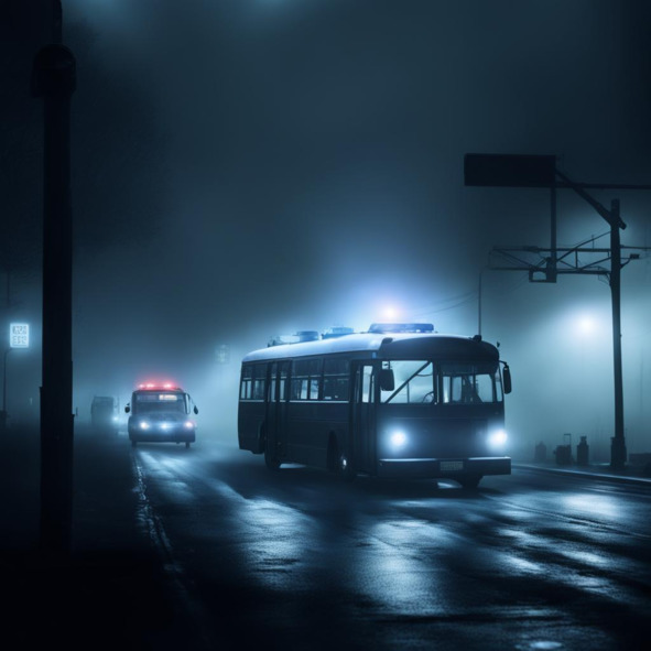 Джим вышел из автобуса. Вокруг ничего не было видно из-за плотной стены тумана. Под ногами грел ноги теплый асфальт, покрытый трещинами. В нескольких метрах от автобуса, прорезались яркие цвета полицейской сирены. Джим не раздумывая, быстрым шагом направился к автомобилю, в надежде на то, чтобы кого-нибудь найти или хотя бы что-нибудь. Двери машины оказались открыты, а в салоне никого не было. Рация лежала на сиденье и издавала шипящие звуки. Джим стал осматривать на наличие оружия. В бардачке он нашел фонарик, а так же какие-то документы по сопровождению колонны заключенных. Багажник был тоже открыт, но на месте где должны были лежать два ружья, ничего не было. Джиму только оставалось определить из за чего произошла остановка автобуса, повлекшая за собой столь серьезные последствия.