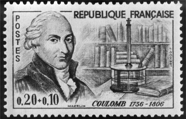 Französische Briefmarke (1986), herausgegeben zum 250. Geburtstag von Coulomb
