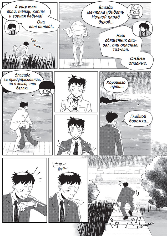 Возразить я не успел. Девушка начала рассказывать историю из мест ее детства. Так я узнал об одиноком, никем не понятом каппе-водяном, который так жаждал завести друзей, что хватал людей за лодыжки и тащил в воду. Его новым знакомым это едва не стоило жизни.