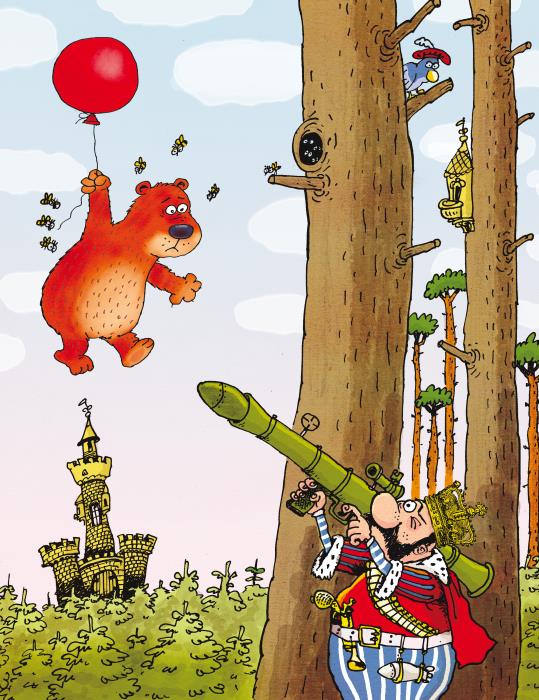Жил-был король. Он очень любил охотиться и убивать разных зверей. Вот раз он убил медведя, а медведь взял и убежал! Король очень удивился и убил оленя.