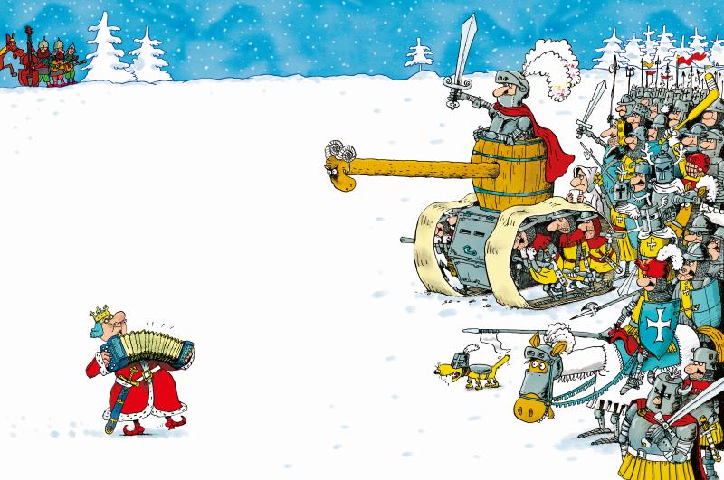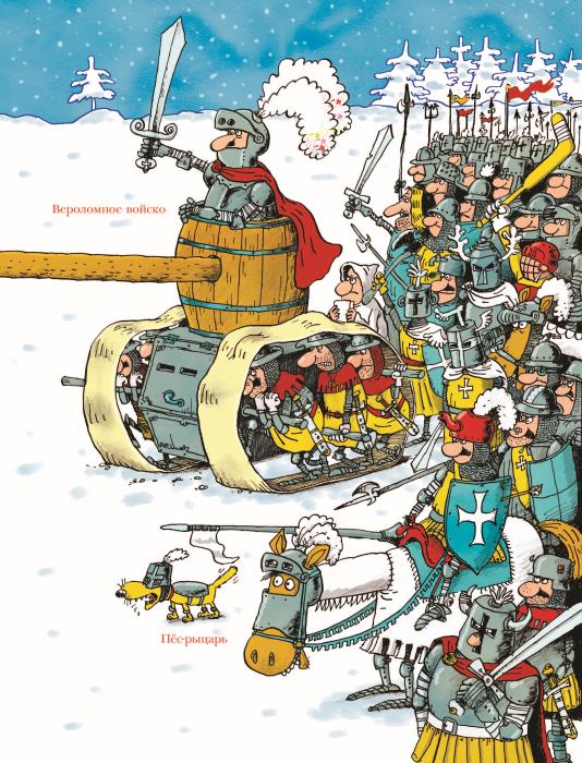 Ну, наш король ка-а-ак даст этому царю! Он хоть и скромный был, а сильный. Злой царь с коня свалился и убежал, следом за ним побежало всё царское войско.