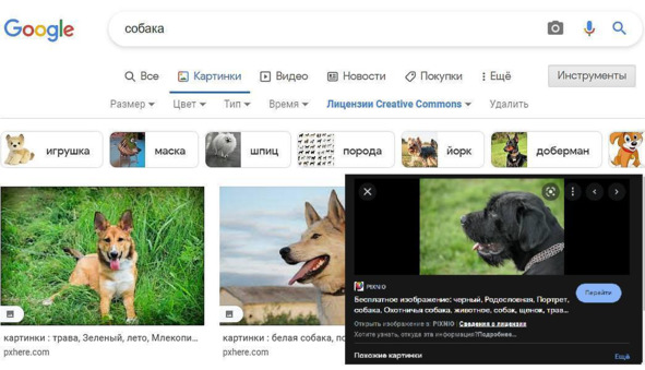 В Гугле и Яндексе. При поиске изображений в Гугл нужно зайти в раздел «Инструменты» и в разделе «Права использования» выбрать «Лицензии Creative Commons». Это позволит находить картинки, которые можно бесплатно использовать в коммерческих целях, для сайтов, в том числе. Обратите внимание! Даже бесплатные картинки иногда требуют атрибуции, то есть ссылки с указанием авторства. Ее или вставляют под картинкой, или в где-то тексте статьи. Чтобы изучить лицензию, нажмите на картинку и выберите «Сведения о лицензии».