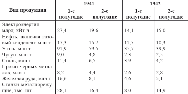 За вторую половину 1941 г. объем валовой продукции промышленности СССР уменьшился в 2,1 раза (табл. 2).
