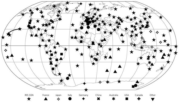 Цифровые сейсмические станции в мире. Увеличение числа и чувствительности станций позволяет регистрировать всё больше сейсмических событий на планете.