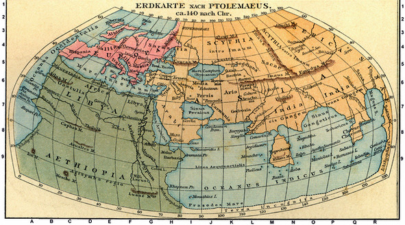 В I веке древнегреческий ученый энциклопедист и математик Клавдий Птолемей в восьми книгах «Руководство по географии» обобщает античные представления о мире, излагает математические основы географии и картографии. Он опубликовал координаты восьми тысяч пунктов от Скандинавии до Египта и от Атлантики до Индокитая, а также 27 карт земной поверхности.