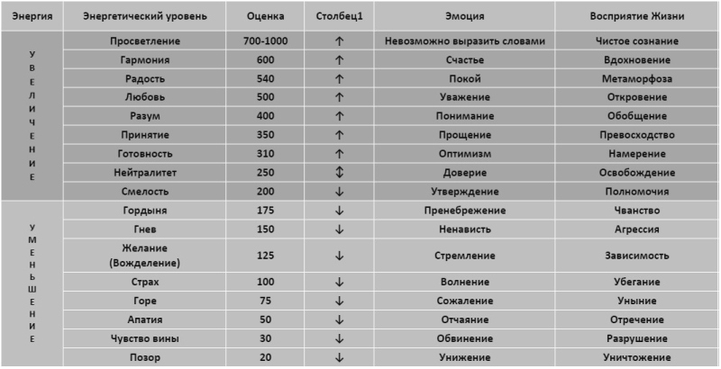 Рис. 1. Карта сознания (шкала эмоций) Дэвида Хокинса