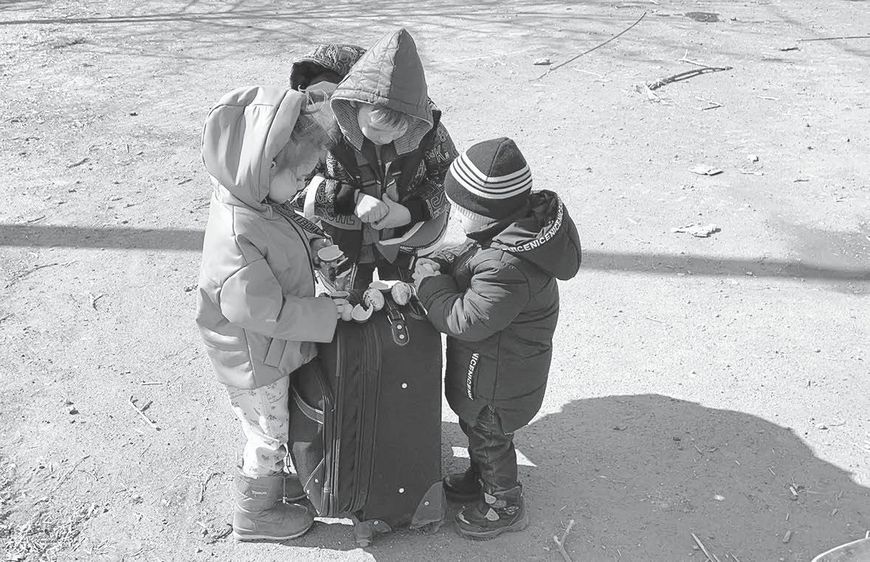 Выбрался из подвала на свет божий – насколько неуместно для этой реальности это выражение. Вроде разрывы стихли, доносится стрельба и шум далёкого боя. Пауза. Оборачиваюсь и внезапно вижу большую группу беженцев, быстро идущих от соседних домов. Они катят чемоданы, коляски, несут сумки. Один… два… десять, двадцать! Да тут целый караван! Let’s my people go… Воспользовавшись затишьем, они хотят выбраться из ада войны.
